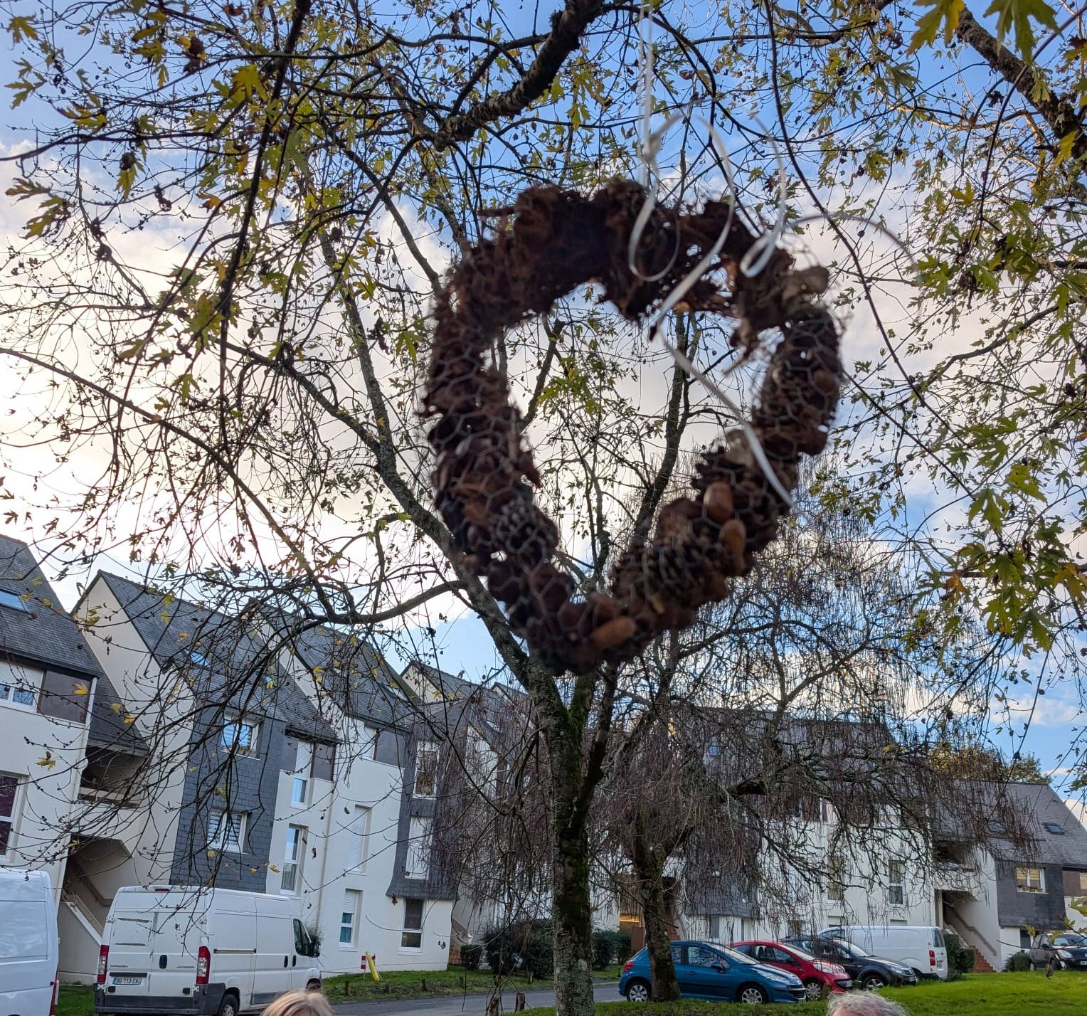 À Auray, l’équipe du Fraternibus a choisi d’innover en imaginant décorant le quartier. Les mardis précédant la rencontre, cette initiative a donné lieu à un atelier bricolage convivial, suivi de l’accrochage des décorations dans les arbres. Pilotée par l’un des membres de l’équipe, cette décoration éphémère a été l’occasion d’un travail collectif très apprécié.